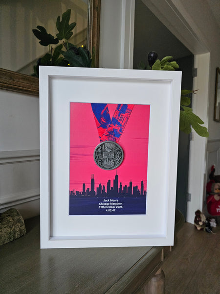 Display your achievement with pride! This stunning piece features the framed marathon medal over the city's iconic skyline.