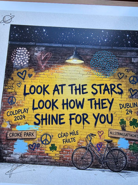 Relive the magic of the unforgettable nights at Croke Park in 2024 with these exclusive lyric-inspired wall art prints, created especially for fans of Coldplay.