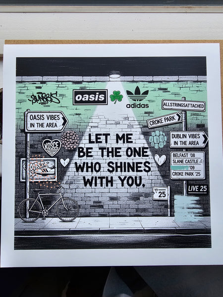 Each print is designed with your favorite Oasis lyrics or song titles, and brought to life with bold, graffiti-inspired art that channels the raw emotion and rebellious spirit of the band.